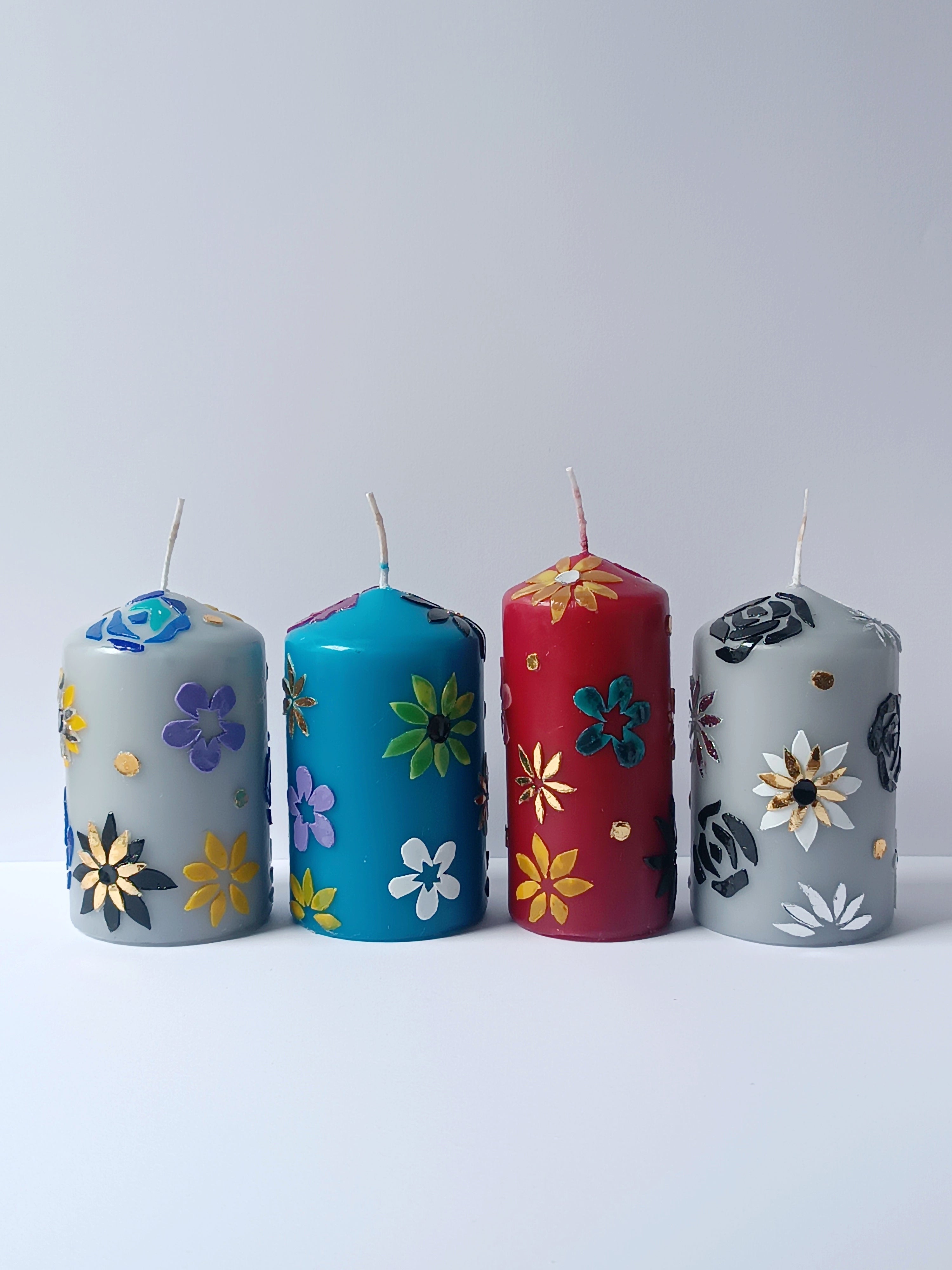Each design is created using my playful wax appliqué technique, a contemporary twist on hand-painted candles.