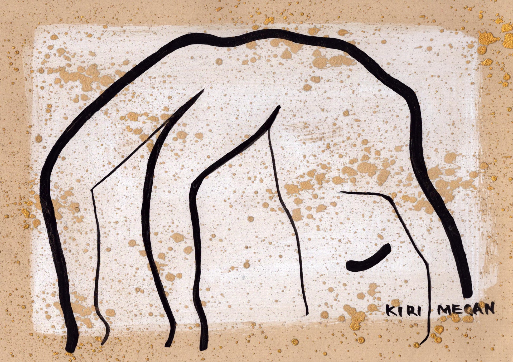Reclined figures emerge from smoky, textured surfaces, their presence both fleeting and eternal. The speckled, sandy palette invites quiet contemplation, offering a sense of stillness within the aftermath.