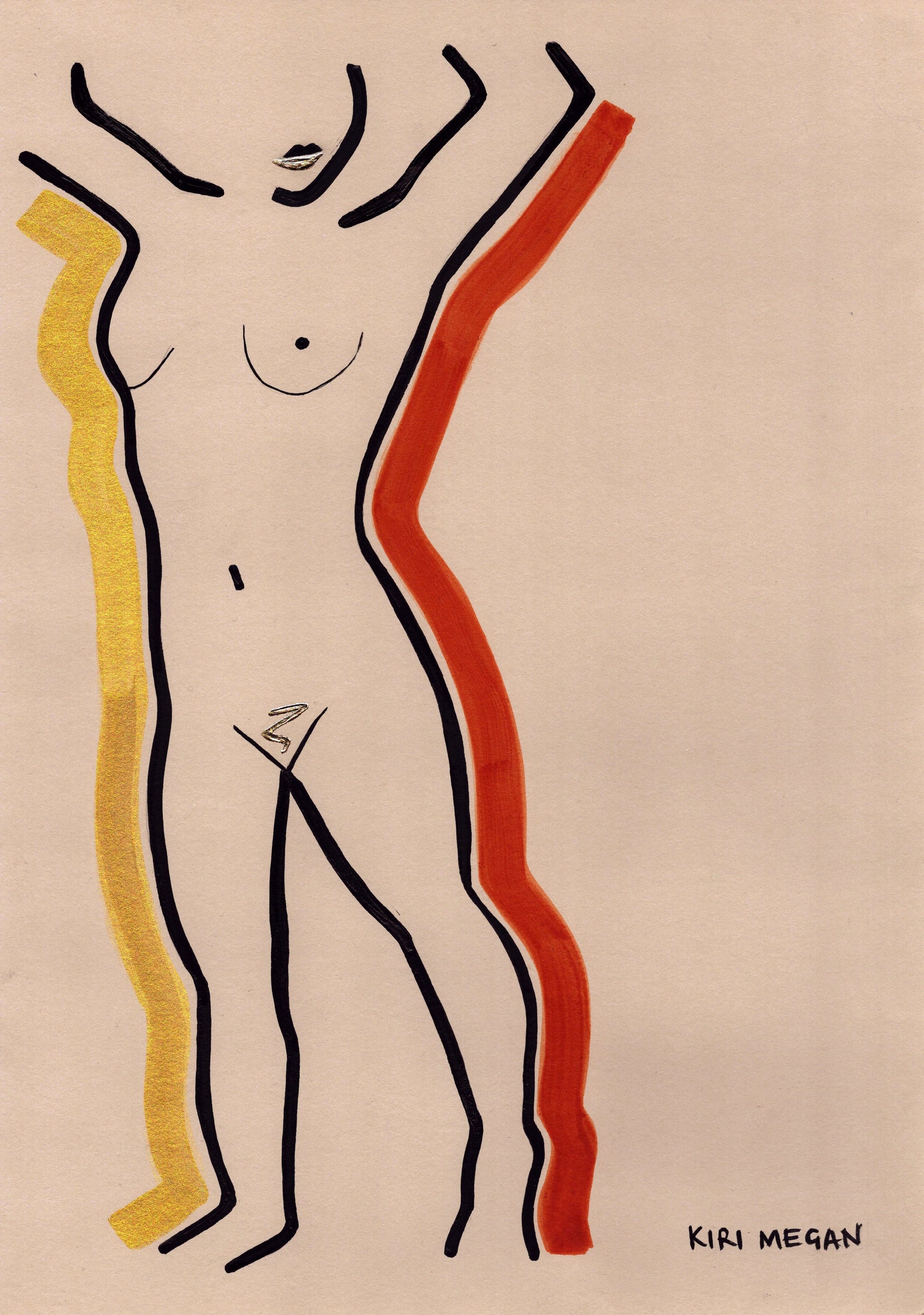 Embers III - Radiance Figure Painting in Mica and Sennelier Ink (A3)