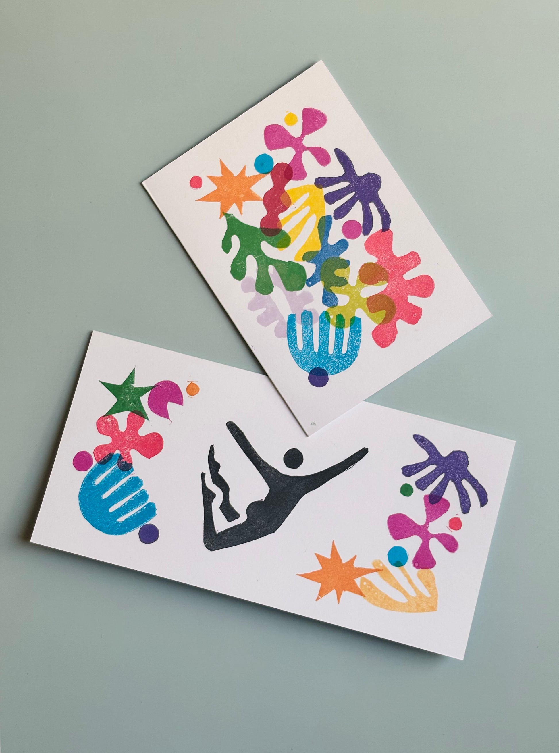 Handmade Linocut Card Pair – Artistic Greeting Bundle