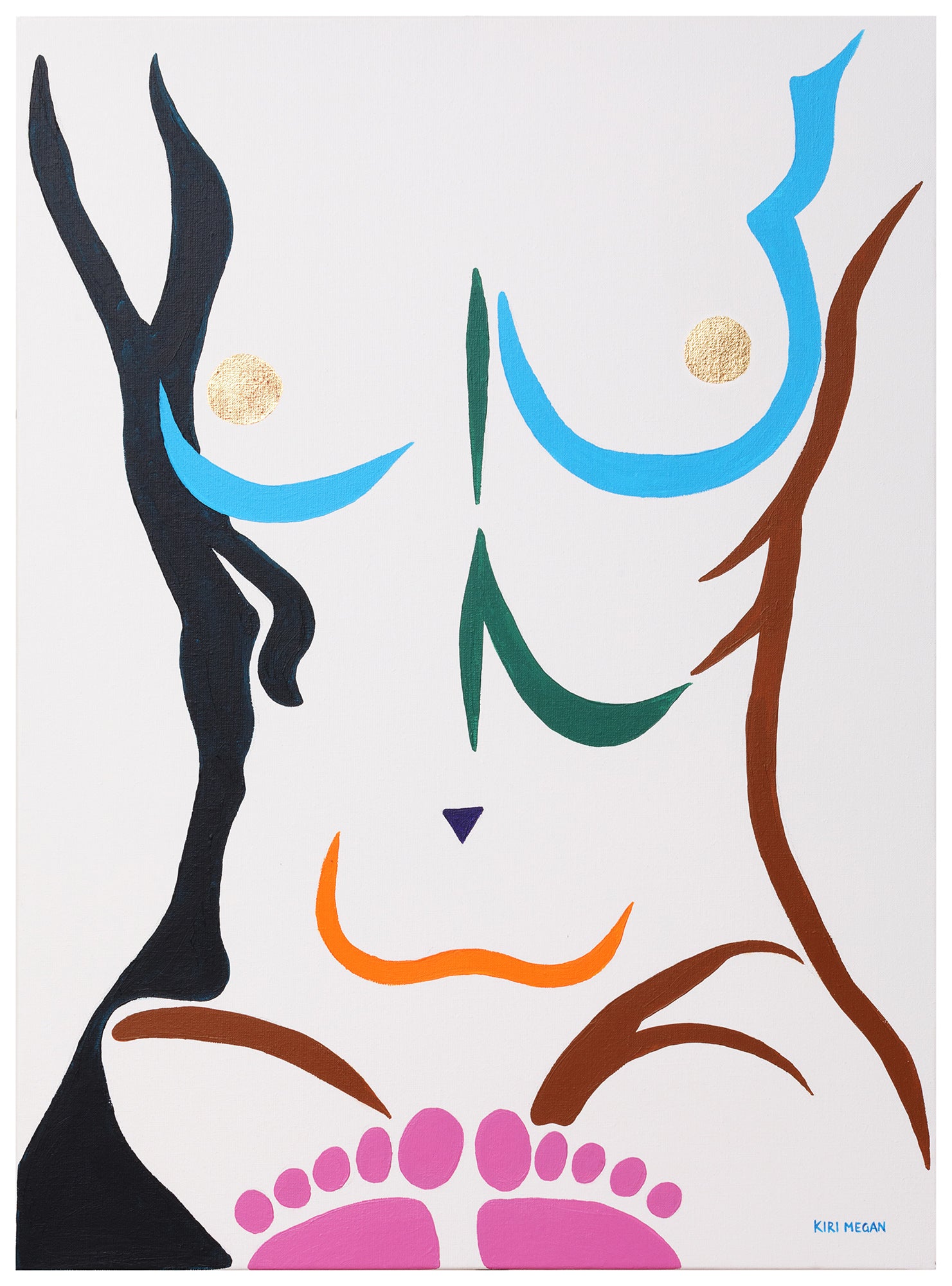 Created with clean graphic lines over layered washes of colour, this painting combines precision with softness. The figure feels both intimate and abstract, a fleeting moment captured in form. Shadow paintings are timeless and versatile, ideal for interiors that balance elegance with bold design.